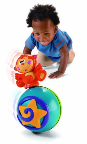 Ready, set, crawl! Baby will delight in chasing after this funny friend. As baby bats at the ball or rolls it across the floor, the cheerful monkey balances on top. Silly sounds and music add to the excitement! Includes an on/off switch for quiet play. Requires two "AAA" batteries, included. Monkey measures 8.5"H. More info ...