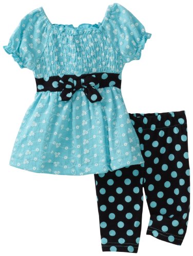 Little lass offers cute and comfortable styles with quality construction, she is adorable in this 2pc set featuring a eyelet top and printed legging More info ...