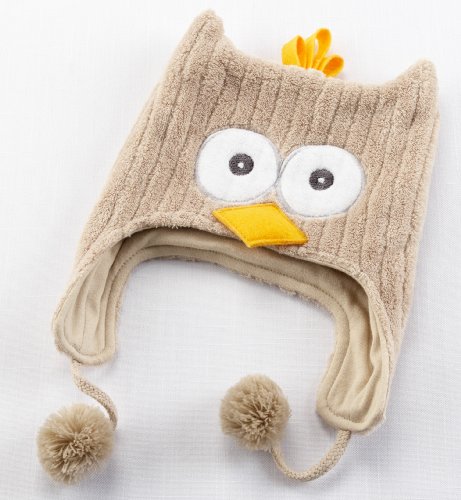 - Matching cap has owl-like ears, two wide eyes, an orange beak and crest and braided-fabric ties with
