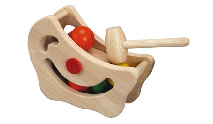 24 months & up. This half-moon container cradles a row of five brightly colored balls. As the ball is pounded on with the wooden mallet, a new ball continuously comes up to replace it. Great for developing eye-hand coordination. More info ...