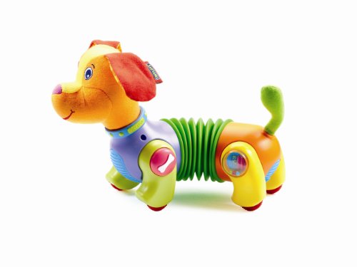 Crawling opens up a whole new world to your baby. To inspire crawling Tiny Love® has created Follow Me Fred, a motorized self-rolling puppy that engages baby and stimulates physical movement and interaction. To best serve baby's crawling needs, Follow Me Fred features a multi-directional, accordion-shaped body that can be set to move in a straight line as well as in a circular motion. In addition to being an excellent crawling motivator, Follow Me Fred also features colorful buttons that summon music and cheerful doggie sounds. Parents will also be happy to know that Follow Me Fred comes with two speed settings to adapt to baby's pace. This cheerful pup also barks and plays musical tunes when in motion. Additionally, should baby forget about her new friend, just like a real puppy, Follow Me Fred will bark after a minute or so to remind baby to play with him again. Includes 3 AA Batteries. Ages 6 mos. and up. 10"H x 8"W x 4"D.The TINY LOVE Follow Me Fred is an adorable puppy with intriguing sounds and motions that are sure to delight your baby. Activated by your baby's touch, this self-rolling puppy will encourage crawling, and fun buttons and sounds will enhance your baby's cognitive development. Parents can even set Fred's rolling speed to customize it throughout their baby's crawling stages.