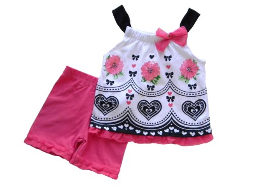 Young Hearts Baby Girl's Top and Ruffle Hem Short Leggings Outfit