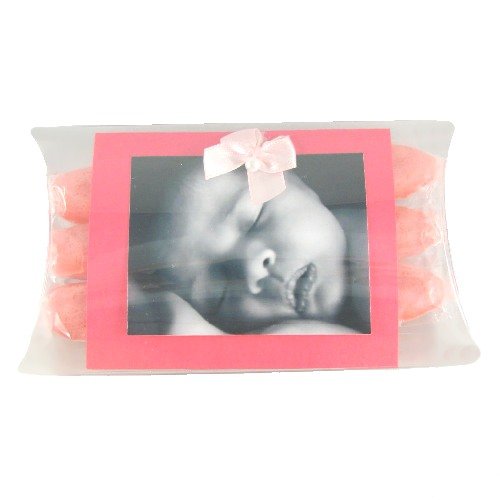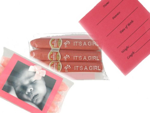 - This Baby Girl announcement includes a photo mounting card with fabric bow, and 3 of our "It's A Girl" Pink Bubblegum Cigars, all in a clear Pillow Box for a beautiful presentation!