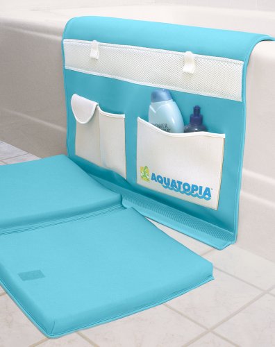 Bath time can wreak havoc on parents' elbows and knees, but not with our neoprene bath kneeler! This tub-side knee saver is thickly padded and non-slip, and suctions right to your bathtub. With three pockets to keep supplies close at hand, so you can keep your focus on baby. Other pluses: it folds away compactly, and it's the first machine washable knee saver we've seen! Fits all standard tubs. Imported.. Tub-side kneeler makes it much more comfortable to supervise kids' baths, so it's a good investment in your baby's bath safety. Knee saver won't shift when you move, thanks to a non-slip knee pad and elbow pad with suction cups. Compact for storage! Separates into 2 pieces and folds away virtually anywhere.. Neoprene knee saver measures 44¾"L x 23¼"W x ¾"H. Machine wash warm, no bleach, and hang dry More info ...