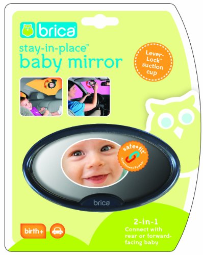 Brica Stay-In-Place Baby Mirror features multiple mounting options. Lever-Lock suction cup secures mirror to rear window to view rear-facing child. Use the visor clip to view forward-facing child. Switch between the visor clip and Lever-Lock suction cup using the simple ball and socket ""snap-tight"" design. More info ...
