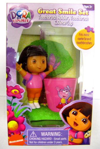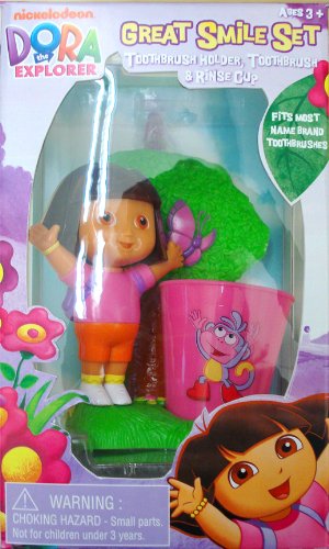 Dora the Explorer Great Smile Toothbrush Gift 3 Pcs Set. Includes: Toothbrush Holder, Toothbrush, & Rinse Cup.