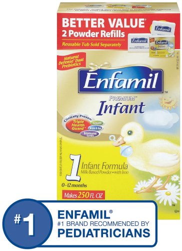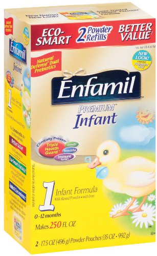 Enfamil premium infant formula 35oz. refill box, for babies 0-12 months. enfamil® premium™ now has natural defense™ dual prebiotics. we've improved the formula you trust to make it even more beneficial for your baby. improved enfamil premium with a unique, dual prebiotic blend now promotes the growth of good bacteria throughout more of your baby's digestive tract than our previous formula. proven healthy development for your baby. improved enfamil premium still has triple health guard™ it's a clinically proven* formula to promote growth, to improve† brain and eye development, and to support the immune system tooEnfamil PREMIUM Infant provides the nutrients needed for your baby's healthy physical growth and development. It's clinically proven, before the addition of prebiotics, to support brain and eye development in babies up to 12 months, and its Natural Defense Dual Prebiotics blend is designed to help support an infant's immune system. This formula is part of Enfamil Staged Formulas, along with Enfamil PREMIUM Newborn and Enfagrow PREMIUM Toddler (not included).