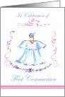 5 x 7 inch premium quality folded paper greeting card. Greeting Card Universe offers the largest selection of Communion invitations on the web. We will mail the invitations to you or direct to your loved ones. Look no further than Greeting Card Universe for your Communion invitation needs. This paper card includes the following themes: communion inivitations, religious ceremony cards, and religious celebration invitation. Greeting Card Universe offers custom Girl invitations so that everyone on your list gets a special Communion invitation this year. More info ...