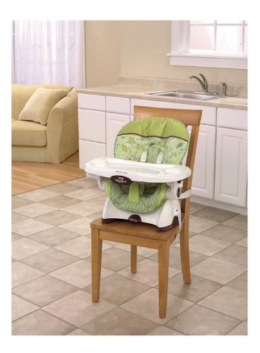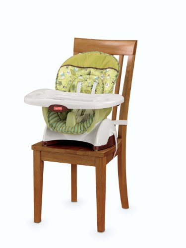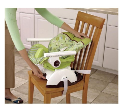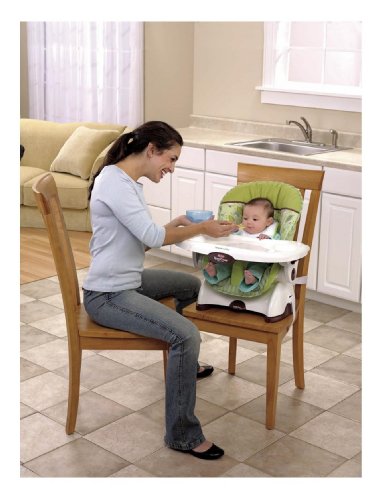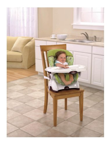 The Fisher-Price Space Saver High Chair offers the same features of a standard high chair with a compact, convenient design. It secures onto most kitchen and dining room chairs while offering three height adjustments and three recline positions that accommodate growing children. Plus, it can convert to a booster seat for toddlers. The removable, machine-washable seat pad makes cleanup easy, and the full-size, dishwasher-safe tray can be removed with one hand for added convenience.