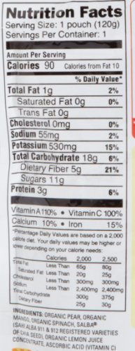 - Made out of organic pears, organic mango, organic spinach, salba, organic lemon juice concentrate, and ascorbic acid