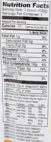 - Made out of organic green beans, organic pears, organic peas, salba, organic lemon juice concentrate, and ascorbic acid