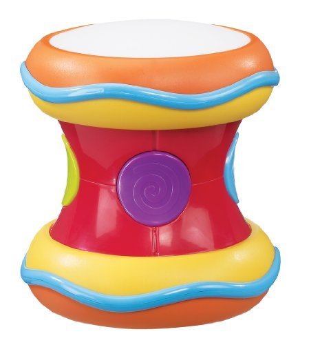 Flash Beat Drum is a great first drum for toddlers. The drum has colorful lights and three modes of play (background music, drum sounds or funny sounds). As Flash Beat Drum rolls on the floor, it plays music. Features volume control and on/off switch. Requires 3 "AA" batteries (included).