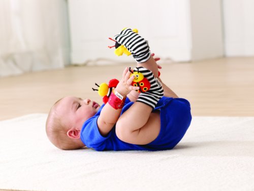 Complete with soft and whimsical bugs, the Lamaze High Contrast Wrist Rattles are ideal for encouraging the development of baby's hand-eye coordination. Just right for baby's delicate wrists, the rattles' high contrast colors and patterns also work to stimulate baby's vision. With every wiggle, baby will delight in the soft rattle noise and be encouraged to reach and grab, further awakening and developing their muscles. More info ...