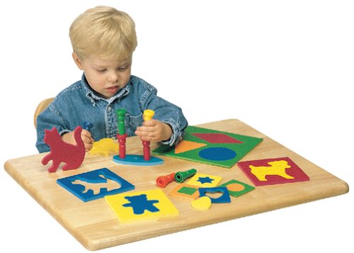 2 - 5 years. Toddler Tote promotes color and shape recognition, concentration, fine motor and eye-hand coordination. Made of crepe rubber, it's safe, quiet, and completely washable. More info ...