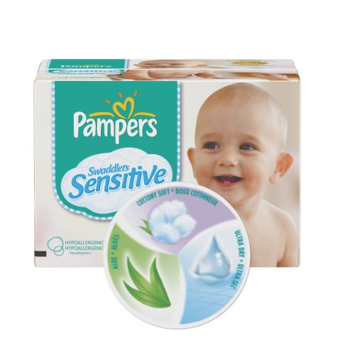 Our best care for your baby’s sensitive skin. Pampers Swaddlers Sensitive diapers are gentle and hypoallergenic with a touch of aloe to help maintain healthy looking skin. Quilted designs provides extra softness to help keep babies comfortable, so it’s no wonder 4 out of 5 moms who used Swaddlers Sensitive diapers would recommend them to a friend. Pampers Swaddlers Sensitive Diapers are available in sizes Newborn, 1, 2, 3, and 4. 2011 P&G. More info ...