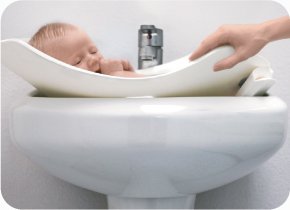 The soft foam protects baby's skin from the cold hard sink, keeping baby feeling safe, warm and happy-just as if baby were being cradled in her mother's arms!